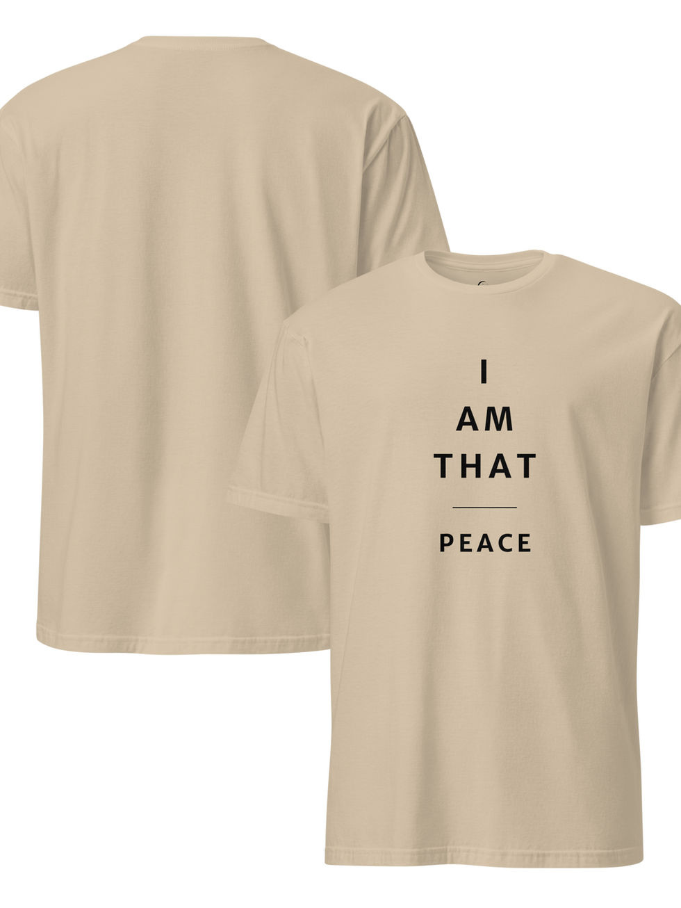 Pure Text simplicity - "I AM THAT" separated from "PEACE" by a delicate line. This clean design speaks to those who find beauty in minimalism and understand that true tranquility needs no adornment.