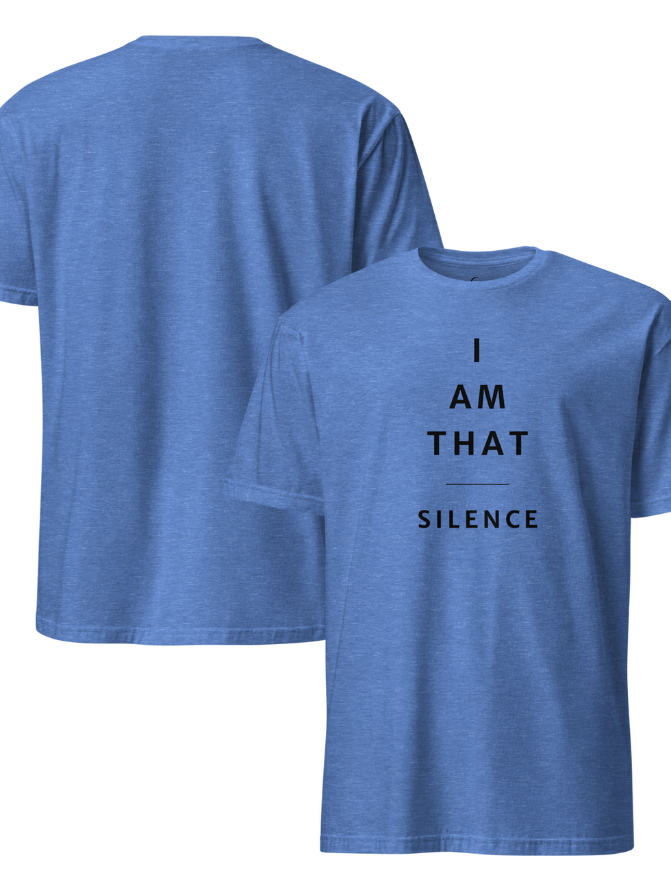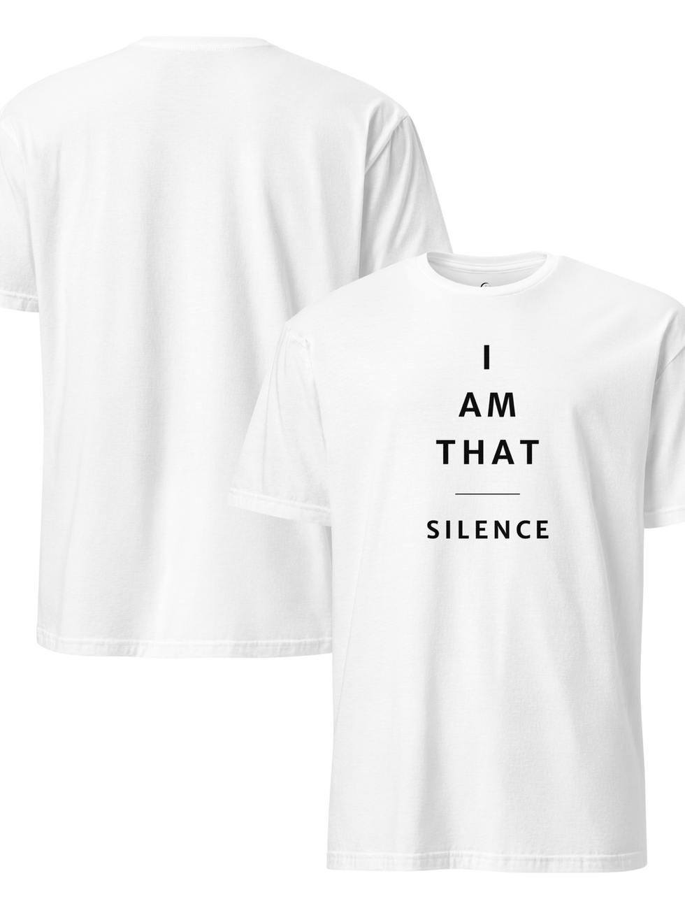 Pure Text simplicity—"I AM THAT" separated from "SILENCE" by a delicate line. This clean design speaks to those who find beauty in minimalism and power in the space between words.